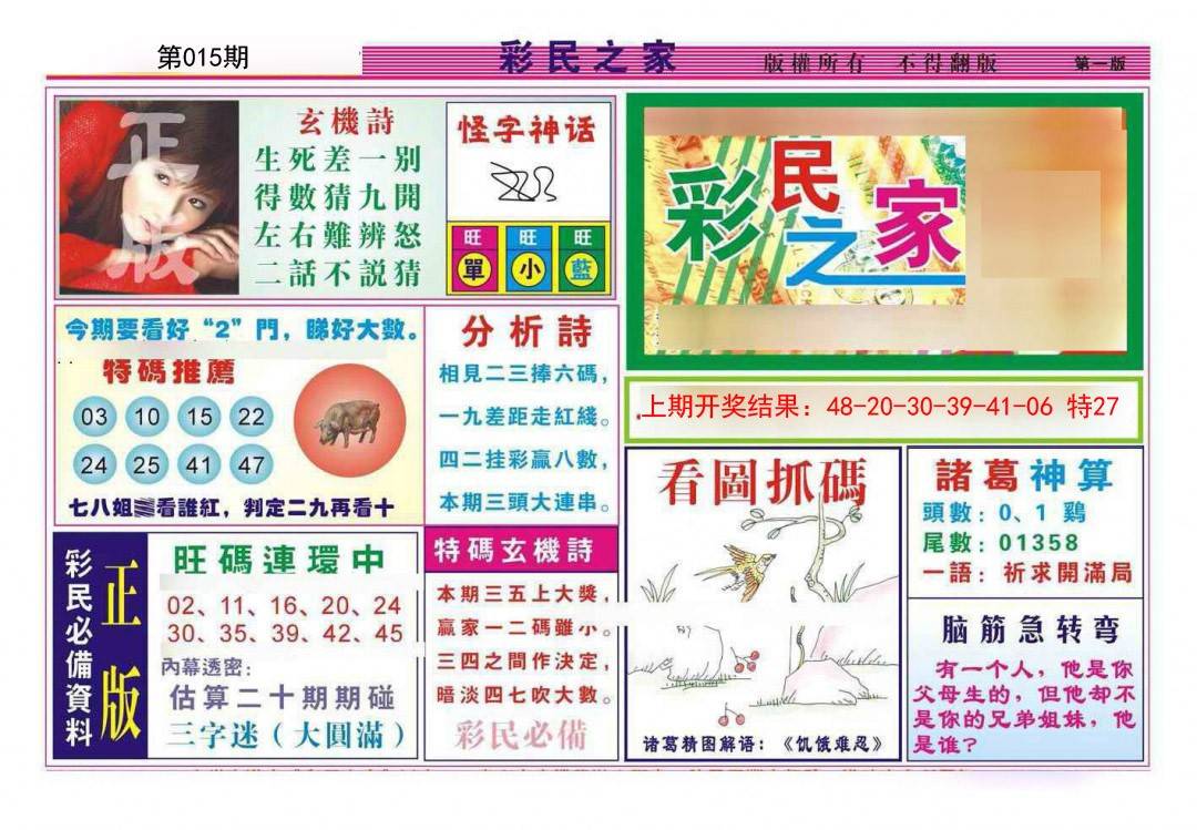 015期:铺天盖地【八码中特】免费到底